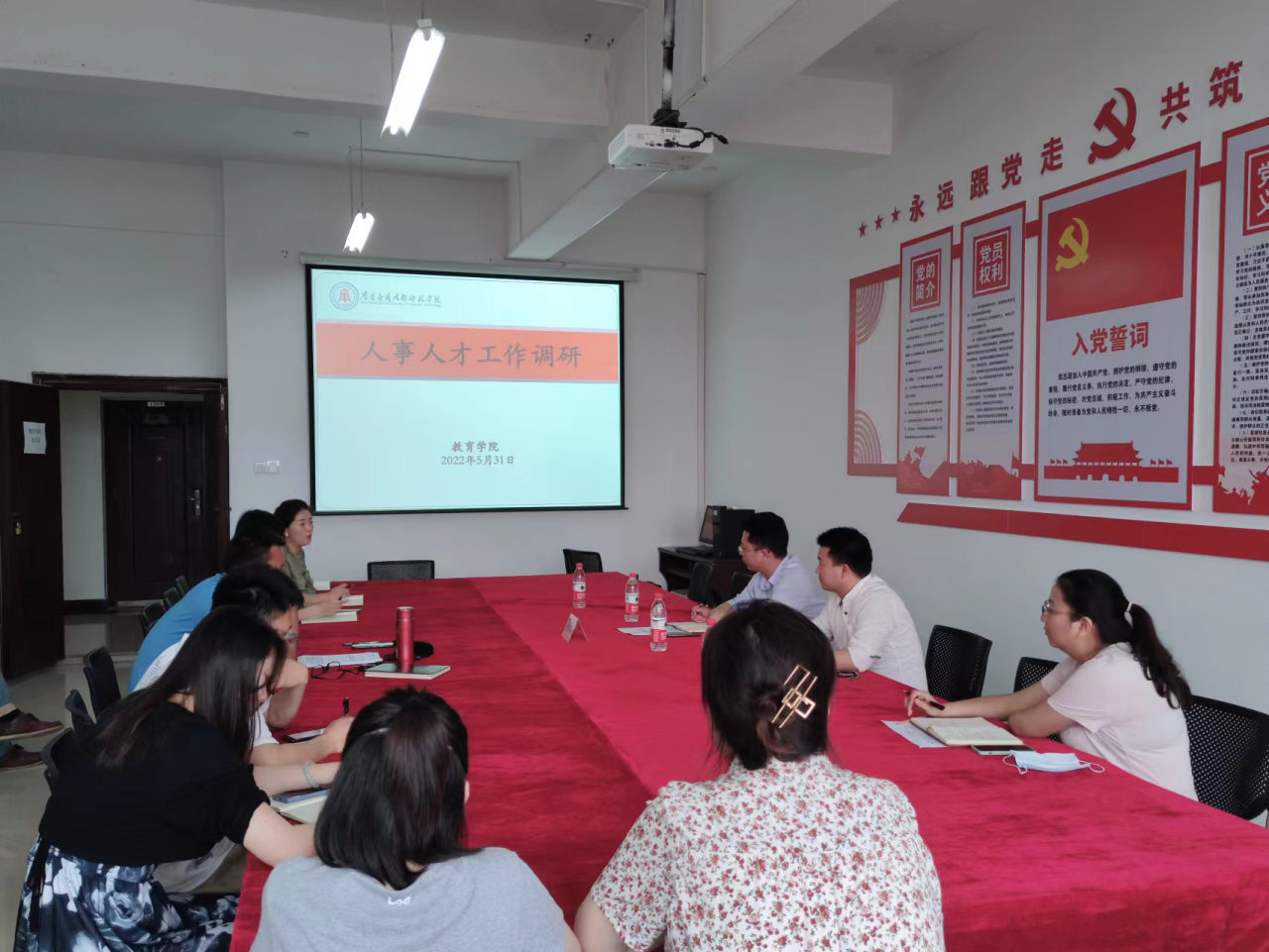 5月31日下午,校长助理郑行忠莅临必赢官网开展人事人才工作专题调研并召开座谈会,校人力资源部有关领导陪同调研。教育学院院长娄全福、副院长张丽芳、各教研室主任、各科室负责人以及必赢3003no1线路检测中心相关人员参加此次调研会议。