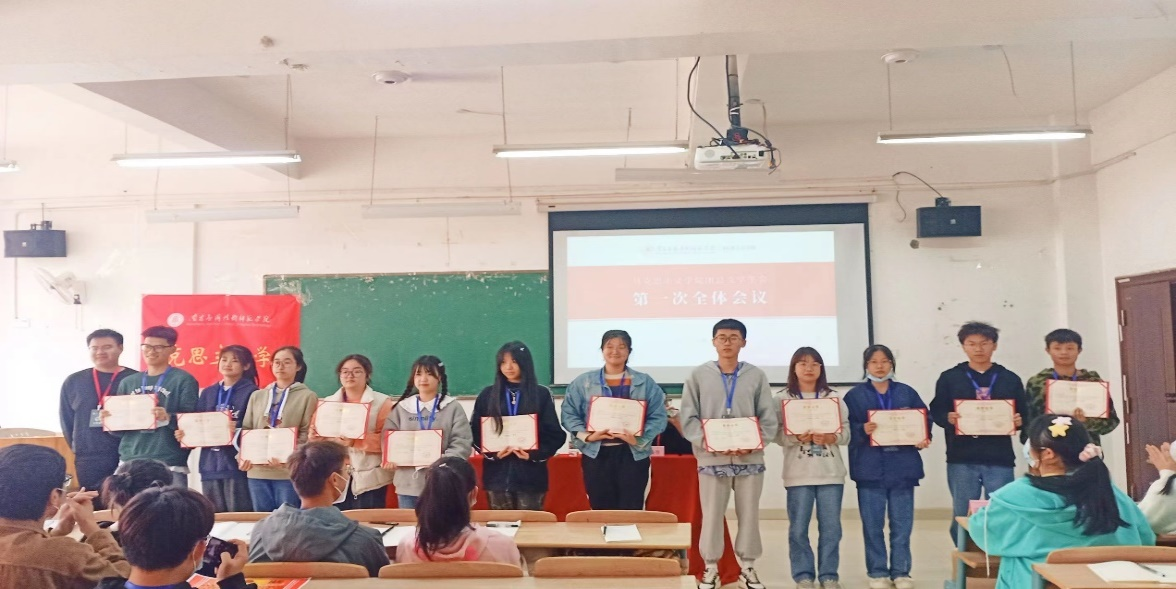 大会在全体成员起立奏唱《国歌》之后正式开始。会上,首先由贺璞书记发表讲话,对2022届新生加入学生会表示欢迎,并对学生会干部们的辛勤工作给予了充分肯定。接着,会议进行颁奖仪式,依次对优秀主席、优秀部门、优秀部长、星级个人颁发证书。然后,康柠老师进行发言,康柠老师对学生会各个部门的工作进行了评价,并提出了自己的期望。最后,全体起立奏唱《团歌》,本次必赢3003no1线路检测中心团总支学生会第一次全体会议圆满结束。