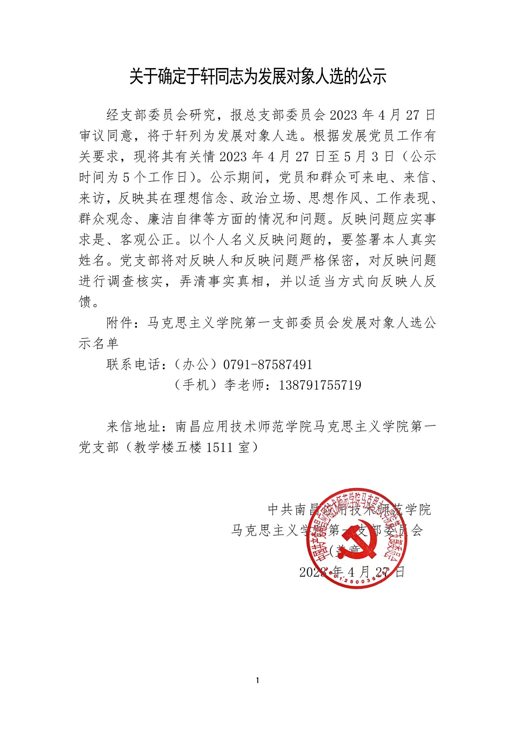 首页栏目 通知公告 学院新闻 习近平思想学习专栏 主题教育学习 院长书记信箱 您现在的位置是:首页 > 首页栏目 > 通知公告 关于确定于轩同志为发展对象人选的公示 管理员2023-04-296540 上一篇 关于确定刘洋等3位同志为发展对象人选的公示 下一篇 必赢3003no1线路检测中心第一支部委员会入党积极分子备案名单
