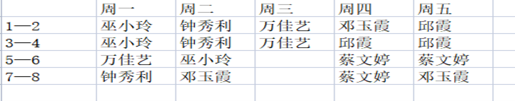 图一:必赢3003no1线路检测中心教学管理工作人员查课值日表