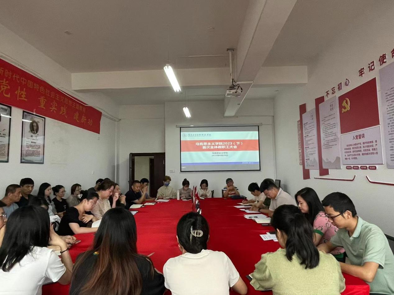 会议伊始,院长文道贵首先向教职工介绍了新任职的党总支书记张欣康,并代表教师们对张书记表示热烈欢迎。文院长指出,新学期正式开始了,全体教师要收心了,做好教学准备工作,要调整心态,认真准备好第一周第一节课。他对暑期学院集体备课、招生就业、办公室调整等工作进行了简要总结。强调学院目前处在快速发展阶段,师资队伍不断扩大,老教师要在师德师风、教学方法等各方面,做好“传帮带”工作,新教师要主动向老教师学习教学经验,快速成长。