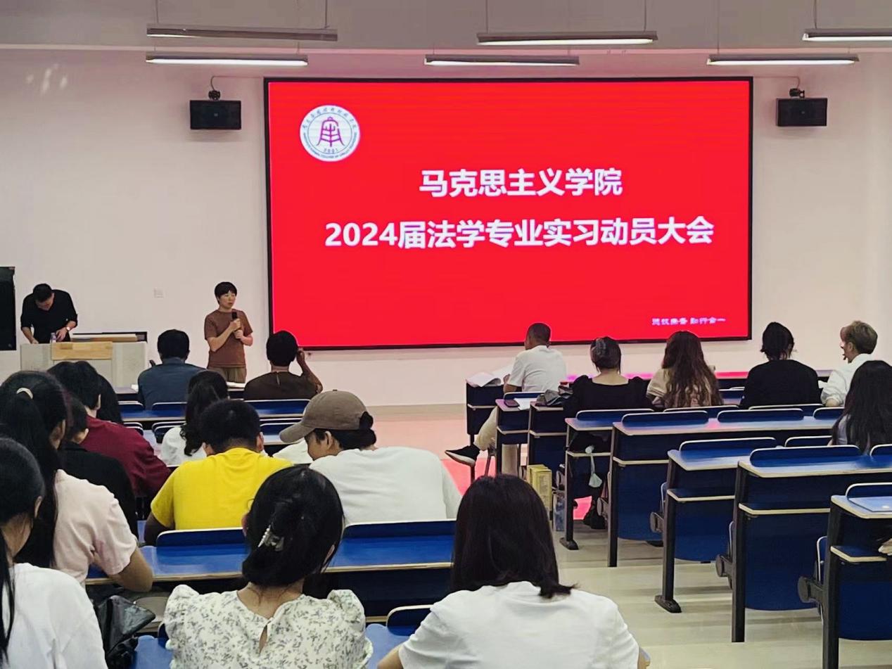 2023年9月27日下午15:30,必赢3003no1线路检测中心在教学楼2311召开了2024届法学本科毕业生实习动员大会。党总支书记张欣康、教学副院长张丹、法学教研室主任李水根、法学专业全体教师、学院教务科老师、班级辅导员以及87名法学本科毕业生参加本次会议。会议由李水根老师主持。