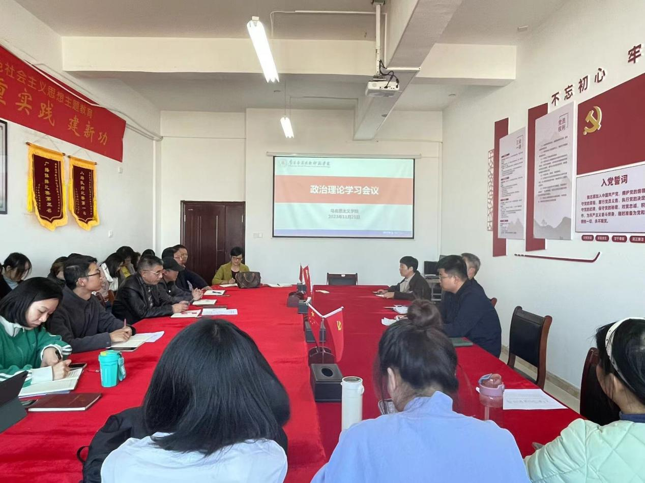 11月21日下午,学院在1511会议室召开了政治理论学习会议。院长文道贵、党总支书记张欣康、副院长张丹及全体教职工参加此次会议,会议由党总支书记张欣康主持。