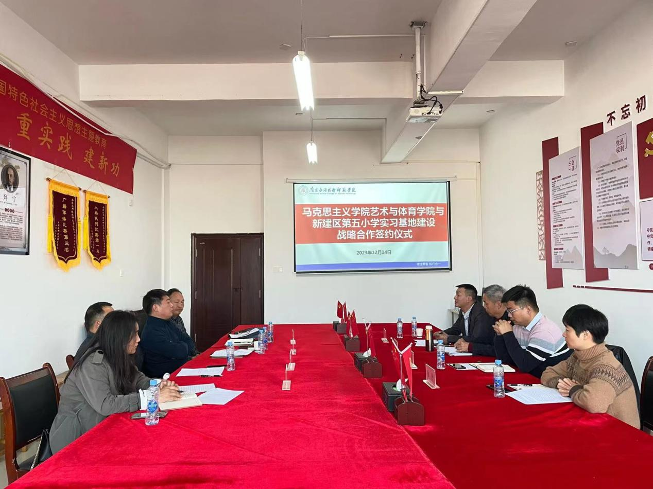 聂智斌表示,与新建区第五小学建立教育实习基地是艺术与体育学院人才培养发展史上的又一重要里程碑,也是艺体学院与普通小学进一步加深融合互补的有益尝试。艺术与体育学院将依托自身项目,发挥资源优势,为合作学校输送优质运动员和训练平台。以此次合作为契机,深度创新人才培养模式,切实让合作落地生根、出新出彩。