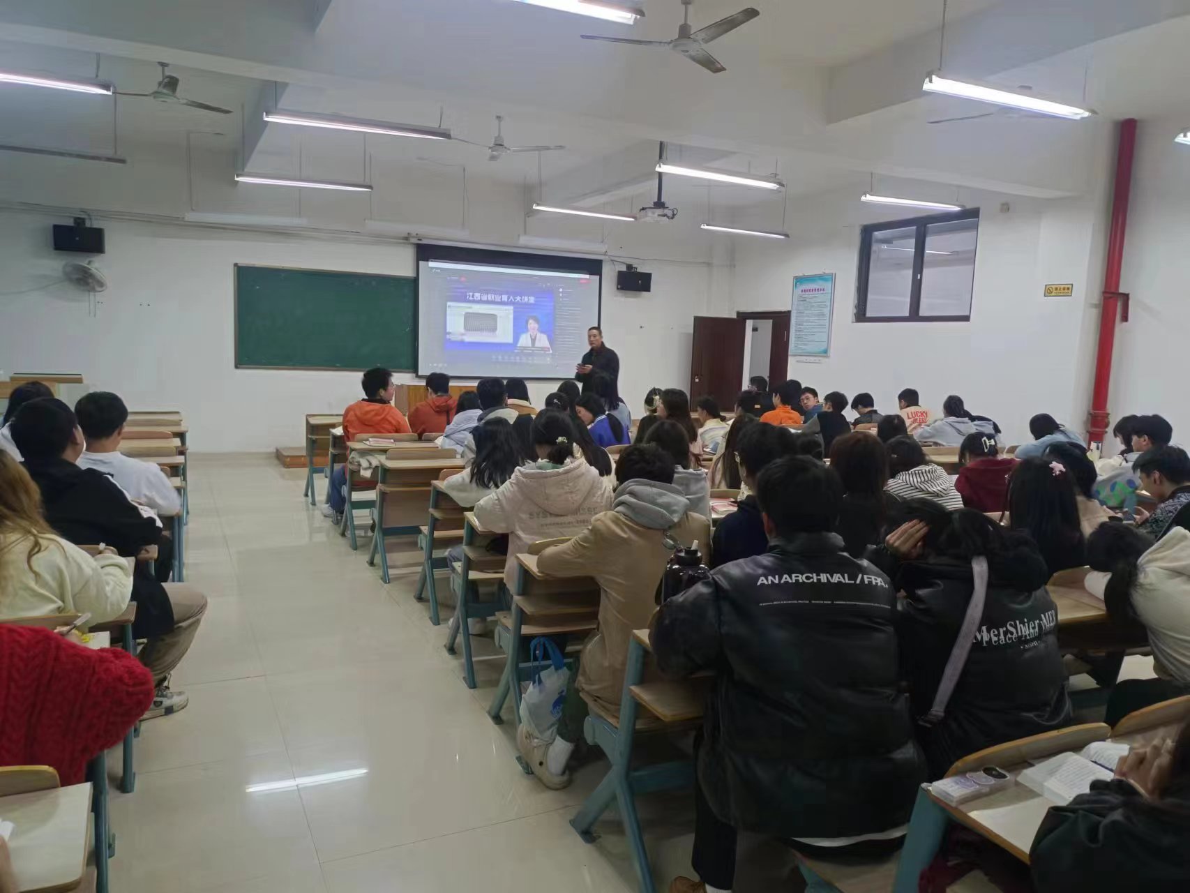 必赢3003no1线路检测中心组织学生观看“江西省就业育人大讲堂”