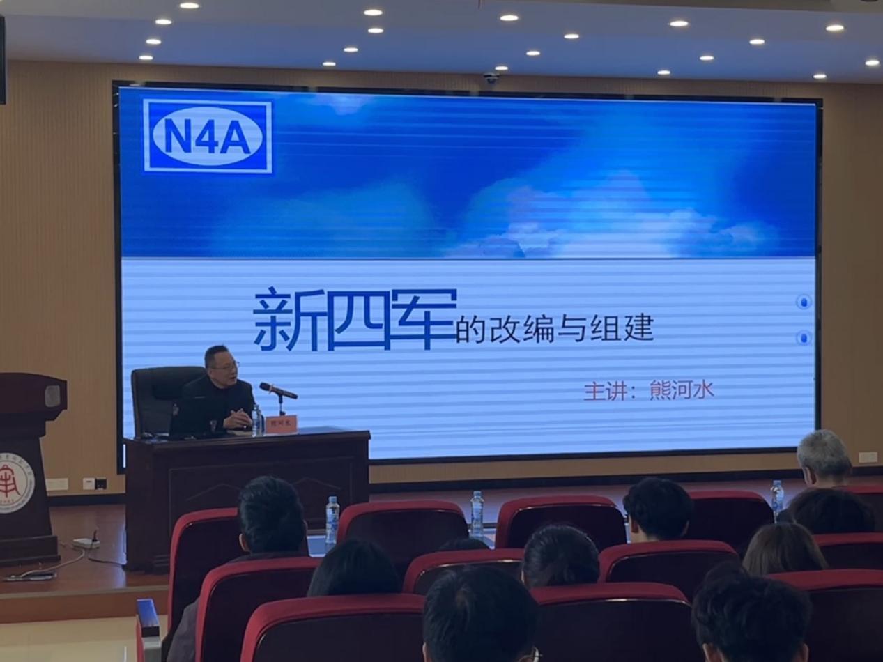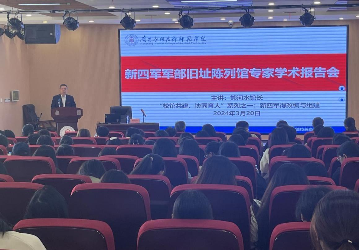 2024年3月20日下午,由我校与南昌新四军军部旧址陈列馆联合打造的“校馆共建、协同育人”特色大思政课系列讲座《新四军的改编与组建》在教学楼2312学术报告厅顺利开讲。第一讲由我校“讲座教授”、南昌新四军军部旧址陈列馆副馆长熊河水研究馆员主讲,陈列馆文博馆员刘怡嘉、管雅丽、熊昕助讲。校党委副书记蓝贤发,党委宣传部、必赢3003no1线路检测中心、学工处、校团委负责人与部分思政课教师、学生代表共约270人参与了本次讲座活动。