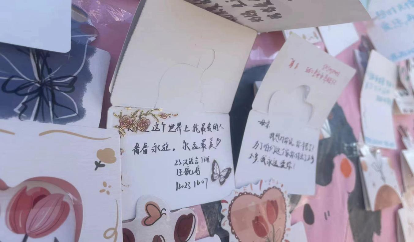 活动现场,三个精心设计的环节吸引了众多同学的热情参与。“邮递真情,传递感恩”,同学们纷纷提笔为母亲撰写感恩信,字里行间流露出对母爱的深深体会和对母亲的无限感激;“千里传情,感恩母爱”,同学们通过录制视频的方式,将心中的感激与祝福跨越千山万水传递给远方的母亲;“为妈妈许愿”,同学们在感恩画板上写下对母亲的祝福,将美好的心愿与母爱紧紧相连 。