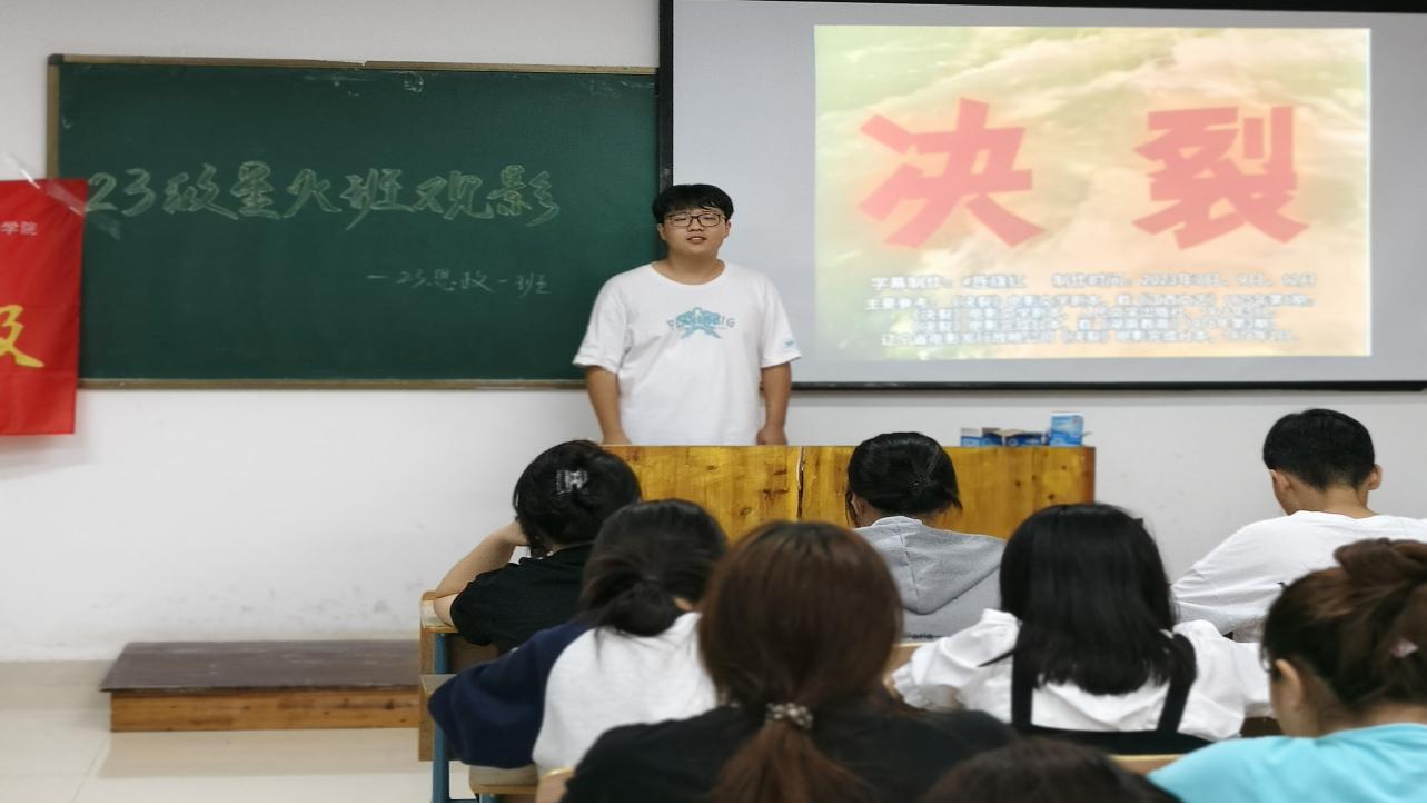 为传承红色基因,激发青春力量,必赢3003no1线路检测中心23级思政1班“星火班”于5月21日晚上19:00,举办了一场红色班级观影活动。通过观看历史经典影片——《决裂》,带领同学们重温红色历史。