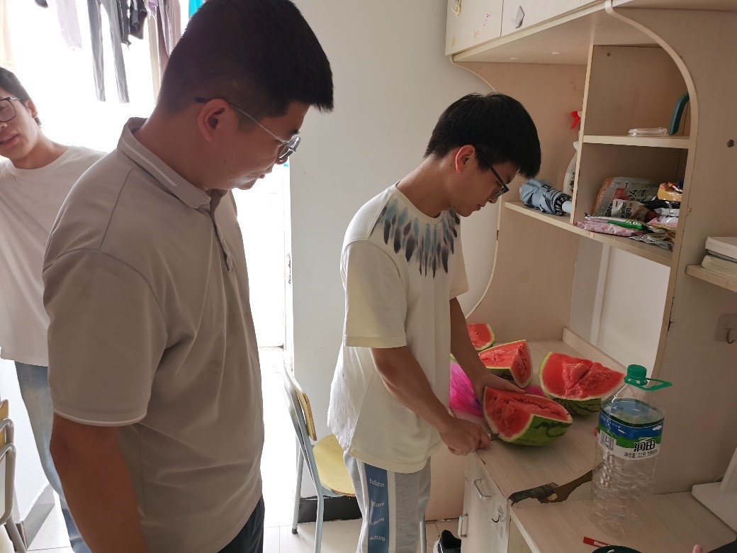 为了备考明年的法考、研究生考试、公务员考试,许多学子选择留在校园继续学习。随着夏日的高温持续,学院深知学子们在酷暑中的辛劳,特意准备了冰饮和西瓜,前往学生宿舍,向留校学子们表达学院的关心和慰问。