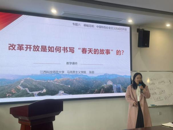 接着,省级教学成果奖获得者、江西科技师范大学马院张丽博士、青年教师郑青青分别以“改革开放是如何书写“春天的故事”的?”、“网络生活中的道德要求”为题讲授示范课。两位来访青年教师在备课准备、教学组织、AI技术手段融入课堂等环节,通过诗意的语言为我们生动地讲述了《习近平新时代中国特色社会主义思想概论》《思想道德修养与法治》精彩片段,通过主题讨论、数据分析、随堂训练、与人工智能对话等多种教学手段,为必赢官网老师带来了一场充满互动与创新的课堂体验。
