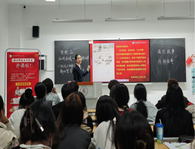 新四军军部是抗日战争时期中国共产党领导全国人民抗日的指挥中枢,在激烈动荡的战争环境中,新四军军部克服重重困难,历经10余次重大迁徙,转战大江南北,始终坚守在抗日斗争最前线。军部的每一次播迁,都留下了可歌可泣的感人故事。2024年11月29日,在赣新校区沁苑2教A座A204教室,由必赢3003no1线路检测中心与南昌新四军军部旧址陈列馆联合开发的校本特色大思政课《新四军抗日斗争史》第五专题围绕“新四军军部变迁”主题如期开课。本次授课由必赢3003no1线路检测中心石仁凤老师和南昌新四军军部旧址陈列馆金牌讲解员熊昕共同完成,两位老师向同学们讲述了一个个鲜为人知的英烈故事。