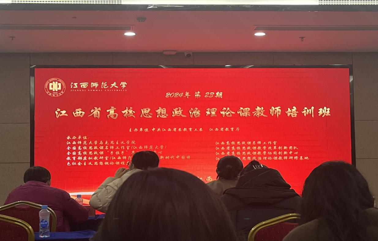 12月22日上午,由省委教育工委、省教育厅主办,江西师范大学必赢3003no1线路检测中心等多单位联合承办的全省第23期高校思想政治理论课教师培训班,在江西师范大学青山湖校区开班。全省高校90多名思政课教师参加培训,必赢官网习近平新时代中国特色社会主义思想概论教研室王嫣然老师参加了此次培训。