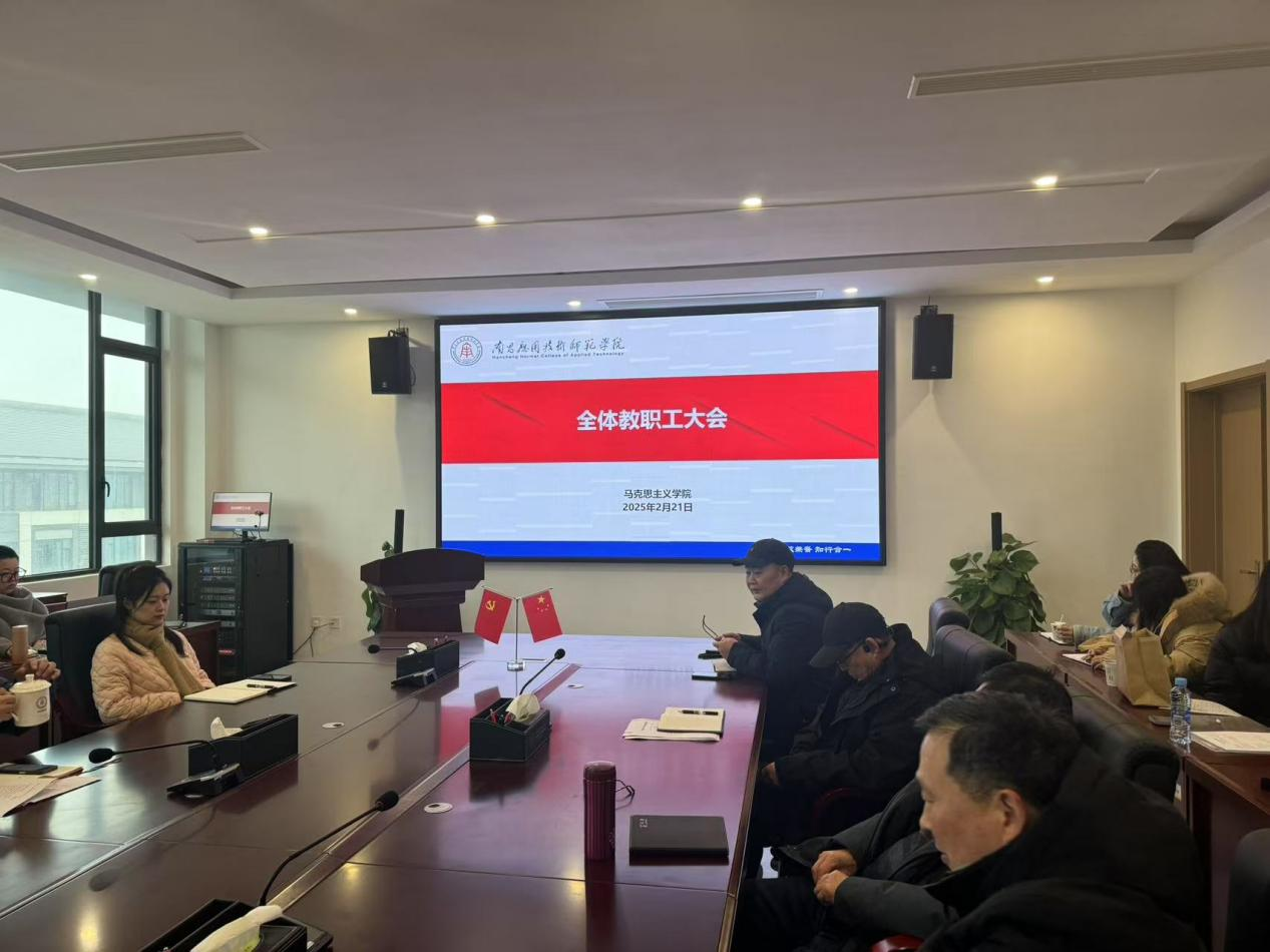 2月21日,学院在沁苑七实506会议室召开2025年春季第一次全体教职工大会。校党委副书记蓝贤发主持会议并讲话,党总支书记张欣康、副院长刘德彰、党总支副书记李婷出席,学院全体教职工参加会议。