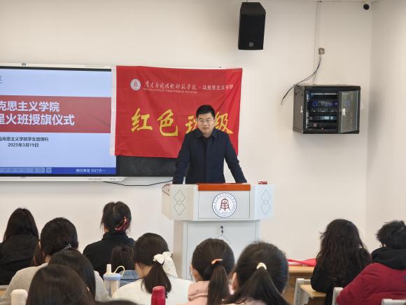 学院党总支书记、24级星火班班主任张欣康为24级星火班授旗,24级星火班正式启航。授旗后,张欣康在讲话中指出,同学们要坚定理想信念,传承“星火”精神,在学业上精益求精,在班级事务中主动作为。勇于探索,肩负起时代赋予青年的责任,在奋斗中展现青春风采。