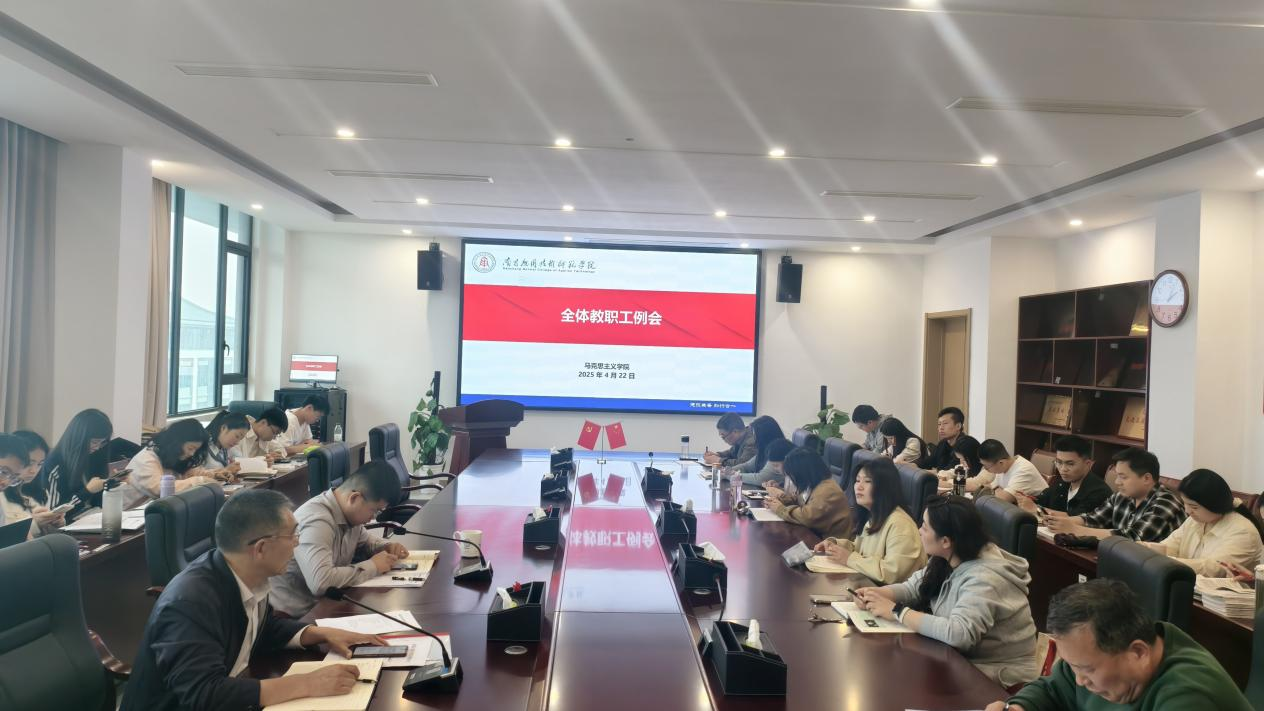 4月22日,学院在赣新校区沁苑7实506会议室召开全体教职工例会。党总支书记张欣康,副院长刘德彰,党总支副书记雷欢欢出席会议,全体教职工参加会议。本次会议由党总支书记张欣康主持。