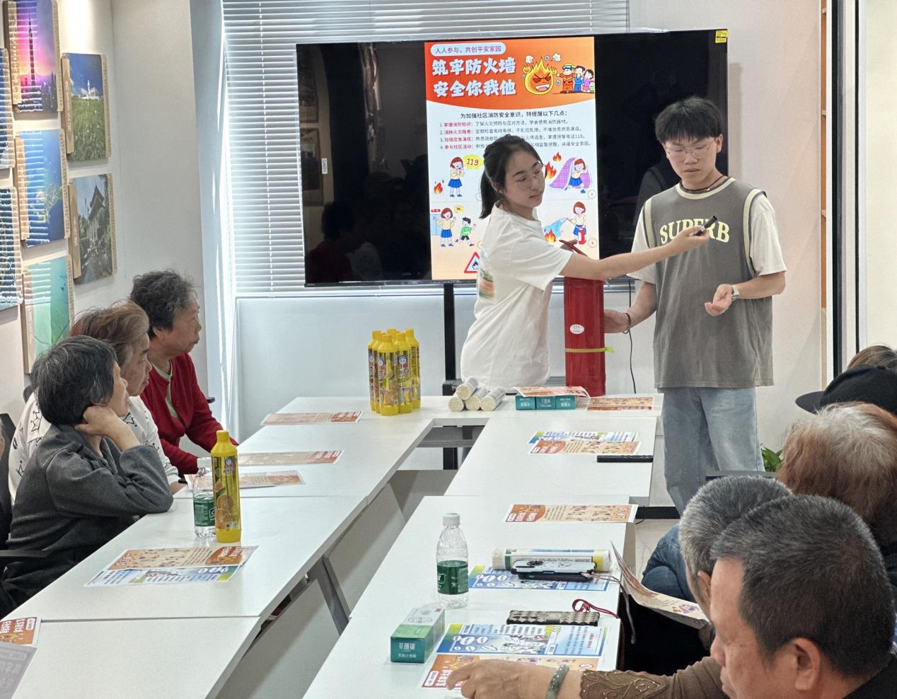 随后,必赢官网宣讲团成员蔡艺与搭档肖明星一同针对消防安全向居民开展情景式讲解。他们向独居老人介绍在家用火用电时需要注意的一些安全事项,随后向社区居民展示如何正确使用灭火器及如何正确逃生,通过宣讲进一步普及消防安全知识,增强居民的安全意识。
