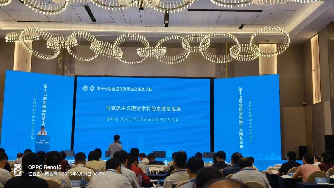 6月20日至 22日,第十七届全国马克思主义院长论坛在南昌举办,坛以 “党的创新理论体系化学理化” 为主题,吸引了众多国内马克思主义理论领域的专家学者齐聚一堂,共同探讨马克思主义理论的创新与发展。学院院长助理杨志明参加论坛。