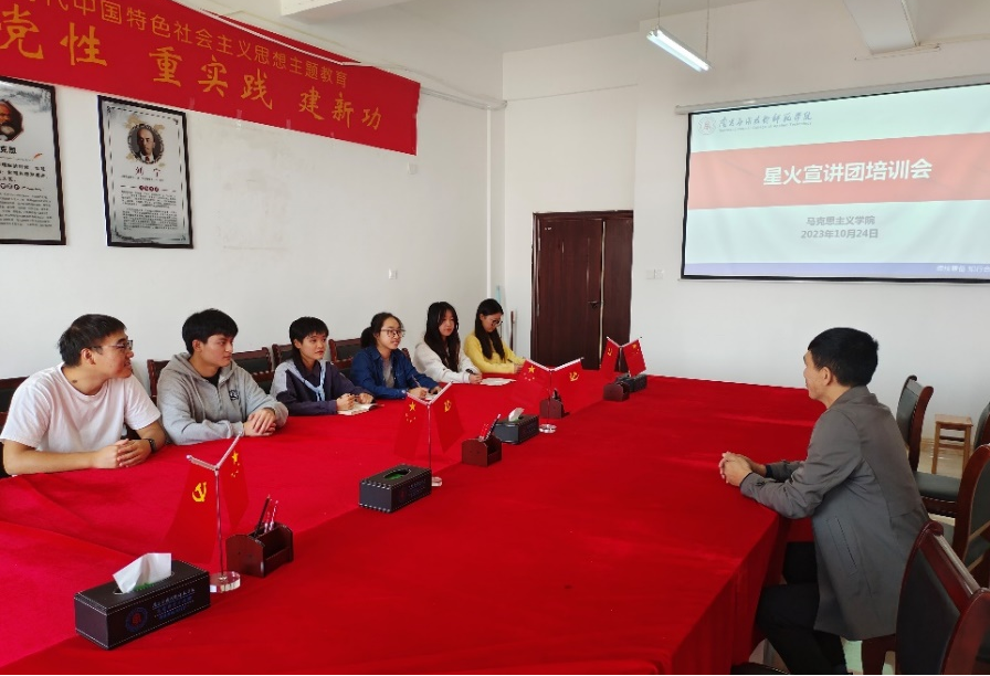 为深入贯彻学习习近平总书记关于“传承红色基因,赓续红色血脉”、“培育时代新人”等重要论述精神,引导大学生发扬好红色传统、传承好红色基因,增强对红色理论的理解和认同,弘扬时代主旋律,帮助星火宣讲团更好的开展红色宣讲活动。2023年10月24日,必赢3003no1线路检测中心特邀卢林保老师在教学楼1511为星火宣讲团培训授课,星火宣讲团全体成员参加。